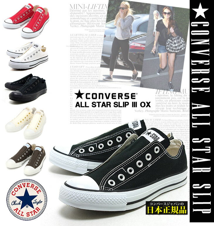 -CONVERSE ALL STAR SLIP III OX- 「ALL STAR/オールスター」からセレブ愛用!スリッポンタイプのスニーカーが登場! 紐なしなのでので脱ぎ履き楽ちん!ヘビロテで履けちゃう! 一部サイズ、カラーによってはメーカーから取り寄せとなる場合がございます。