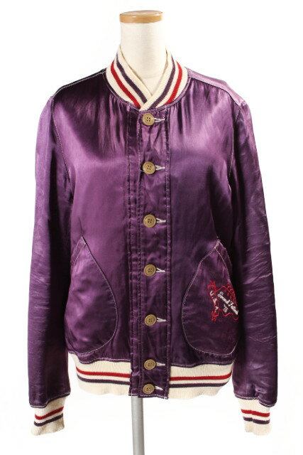 HYSTERIC GLAMOUR ヒステリックグラマー 0213AB11 RAW POWER 刺繍 リブ スカジャン ジャケット ブルゾン パープル系 M 【中古】