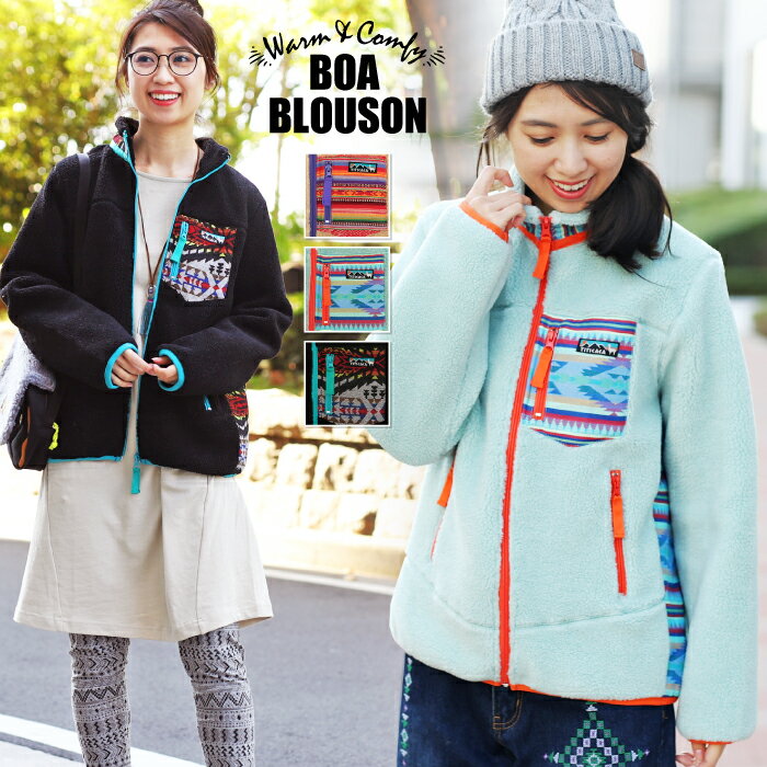 ボア ブルゾン ボアブルゾン レディース アウター ゆったり もこもこ ふわふわ あったか 異素材 秋 冬 エスニック アジアン ネイティブ チチカカ公式 TITICACA / ボアブルゾン hwcbc150